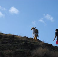 Le chemin de poussière s’arrête. Il faut prendre le versant de la montagne à bras le corps. S’attaquer à ces rochers de façon brute. J’aime m’imaginer qu’ils n’ont jamais été foulés par personne avant nous, même si ça n’est sans doute pas le cas. Alors la pente se renforce, les bras sur les bretelles du sac je regarde mes pieds et grimpe doucement, pas après pas. Il fait très chaud.